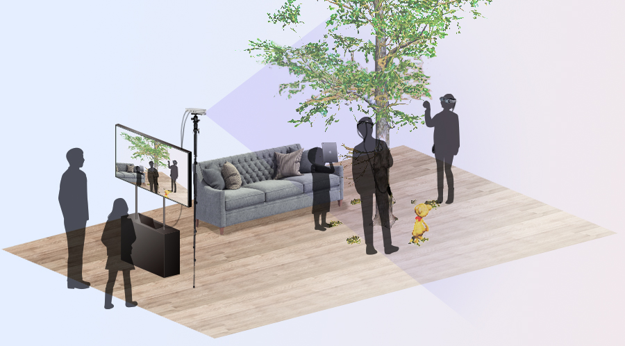 プレイヤー以外の人も一緒に楽しむことができる、鑑賞システムを独自開発。 Magic Leap 1をかけたプレイヤーから世界がどのように見え、どんな体験をしているのかを、 プレイヤー以外の方も実況画面を通して楽しむことを可能にしています。